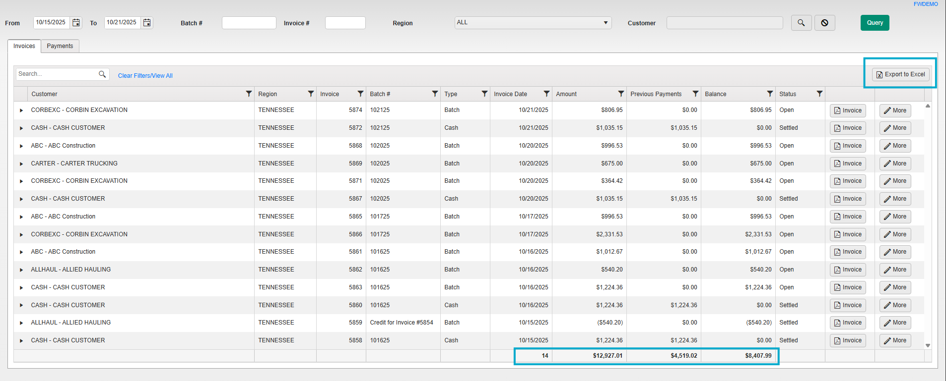 Added a new Export to Excel feature to the Invoice & Payments grids.